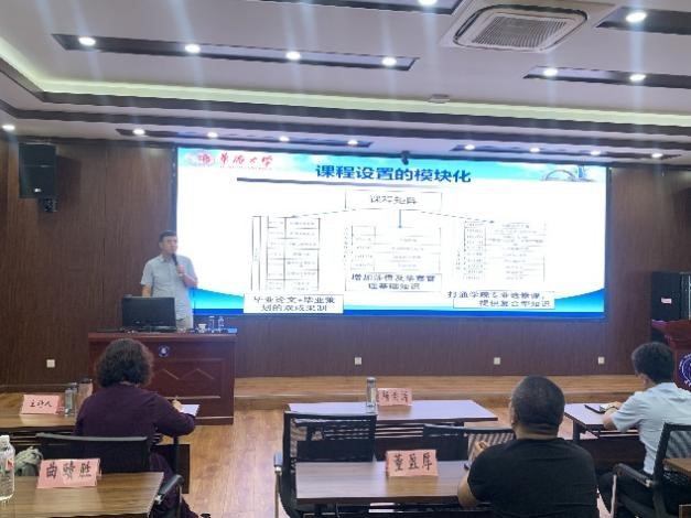 杨洪涛教授以“如何高质量推进省级、国家级一流本科专业建设点建设?”为题,立足于教育部全面推进高校课程思政高质量建设、大力推进慕课与在线教学创新发展、以数字化转型引领高等教育高质量发展等大背景,对如何高质量推进国家级一流本科专业建设点建设,分享了自己的专业见解以及华侨大学的经验做法。杨洪涛教授还详细剖析了课程设置的模块化、数字化时代虚实融合背景下的真实问题和教学痛点问题,特别是课程思政教学中的真实问题;提出了一流专业建设的六维度,即一流师资、一流课程、一流教学、一流教材、一流成果、一流学生;分享了“以学生为中心”的线上线下混合式12345教学设计与实践的教学模式,即一个理念、二个课堂、三个方法、四个保障、五个平台。杨洪涛教授的讲座内容上具有专业洞见,风格上风趣幽默,原计划90分钟的分享,在与会教师专注下不知不觉延长到了120分钟。讲座最后,杨洪涛教授与学院教师展开互动和研讨,并细致地进行了答疑解惑。本次讲座在热烈的掌声中圆满结束。