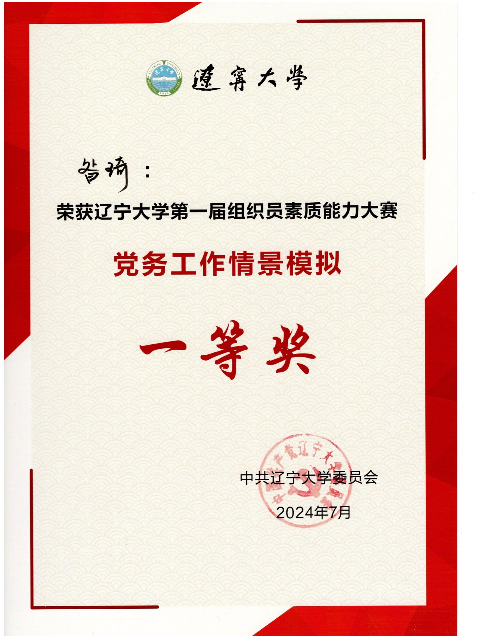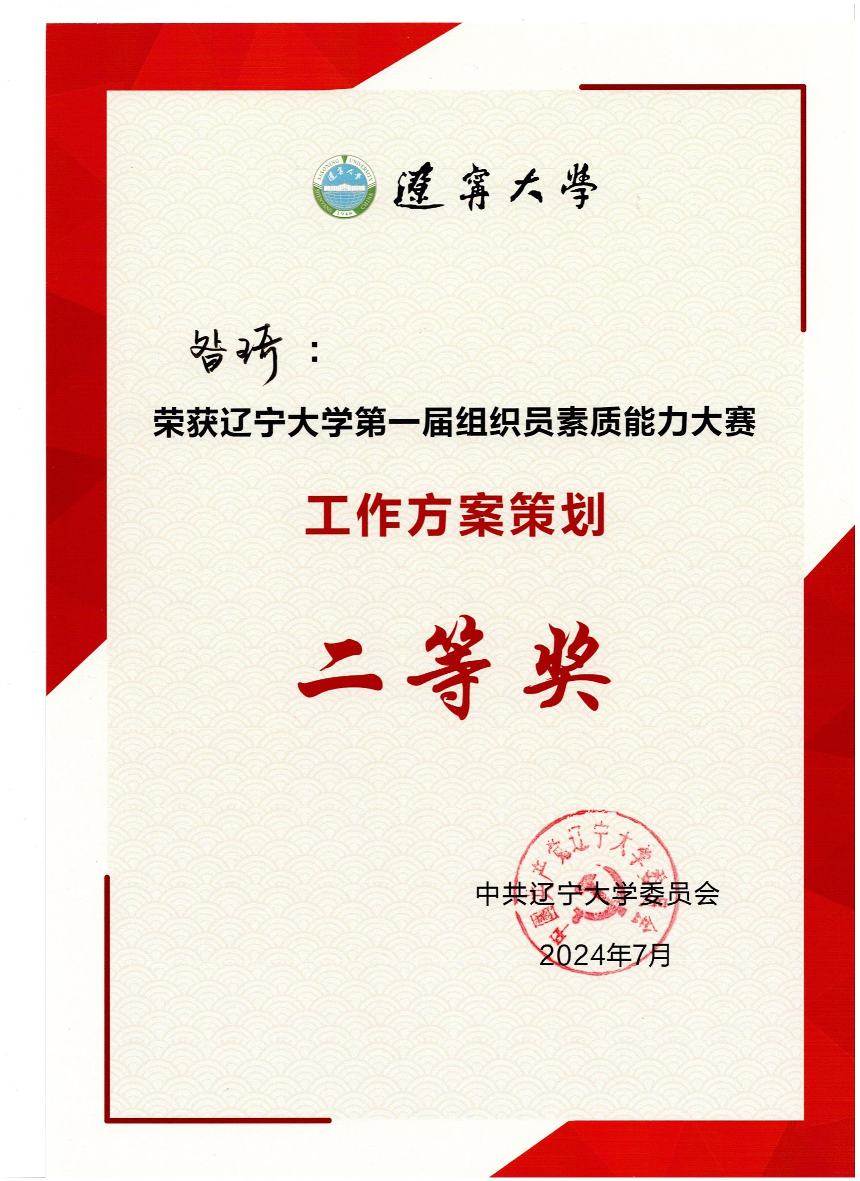 近日,五大联赛买球网党委专职组织员昝琦在体育买球官方网站第一届组织员素质能力大赛中荣获素质能力大赛总成绩二等奖,获得工作方案策划单项赛二等奖,工作情景模拟单项赛一等奖。