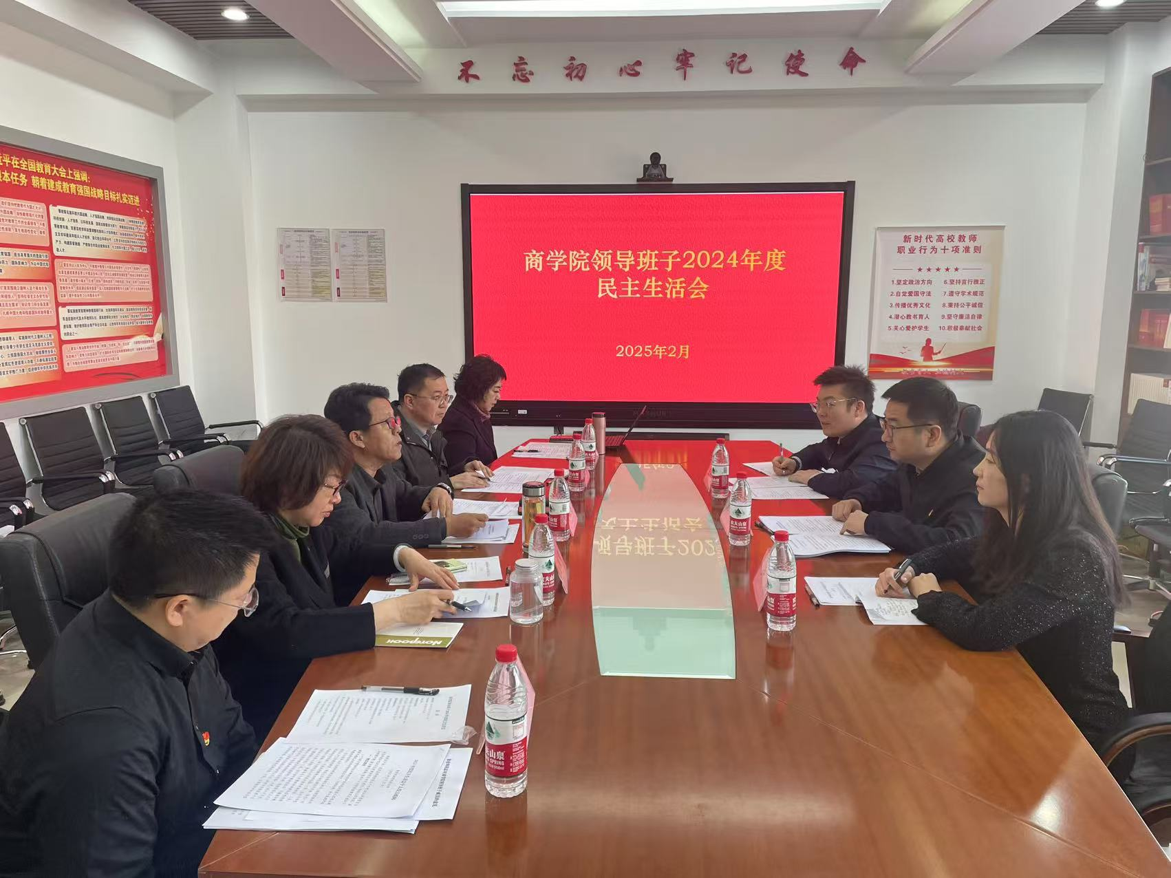 冷丰代表校党委第八督导组进行点评,对学院领导班子2024年度民主生活会给予充分肯定。一是学院党委高度重视,会前准备充分。学院党委明确会议安排,会前充分学习,广泛征求意见,深度谈心谈话,深挖思想症结,深刻剖析典型案例,有针对性地提出整改举措。认真撰写对照检查材料和个人发言提纲。二是民主生活会质量较高,达到预期目标。学院班子成员能够立足找准问题、解决问题,对4个重点方面内容以及落实意识形态工作责任制等方面认真对照检查,对反面典型案例深刻剖析主观客观因素及反观自身存在的问题,及时警示,守住底线。三是对会后工作提出针对性建议。学院应以更高的标准,做好领导班子民主生活会的“后半篇文章”。做好民主生活会情况通报,及时上报召开情况,抓好整改落实。