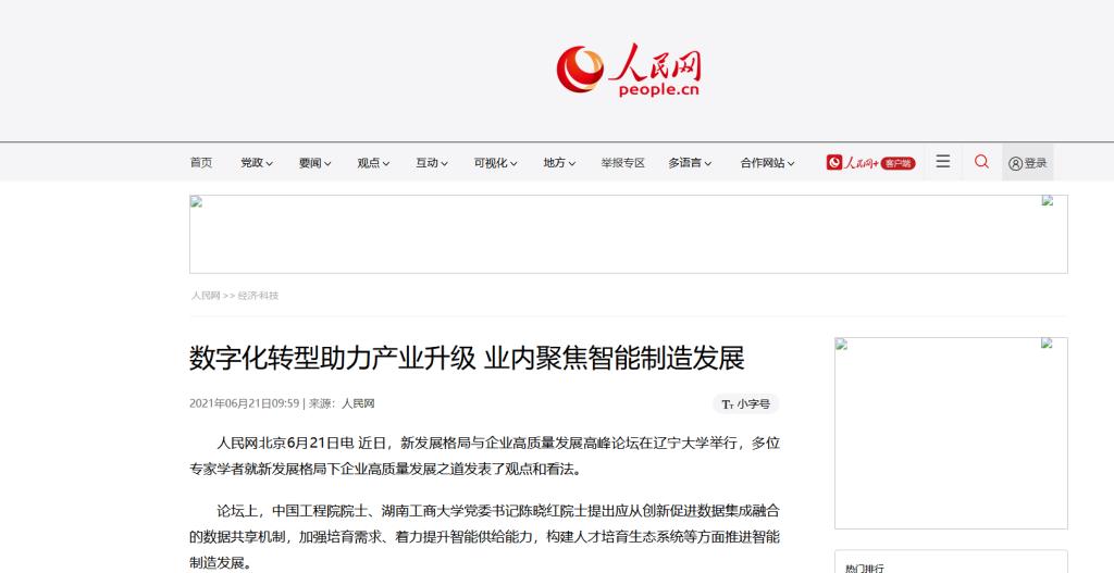 论坛上,中国工程院院士、湖南工商大学党委书记陈晓红院士提出应从创新促进数据集成融合的数据共享机制,加强培育需求、着力提升智能供给能力,构建人才培育生态系统等方面推进智能制造发展。